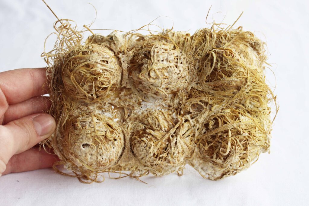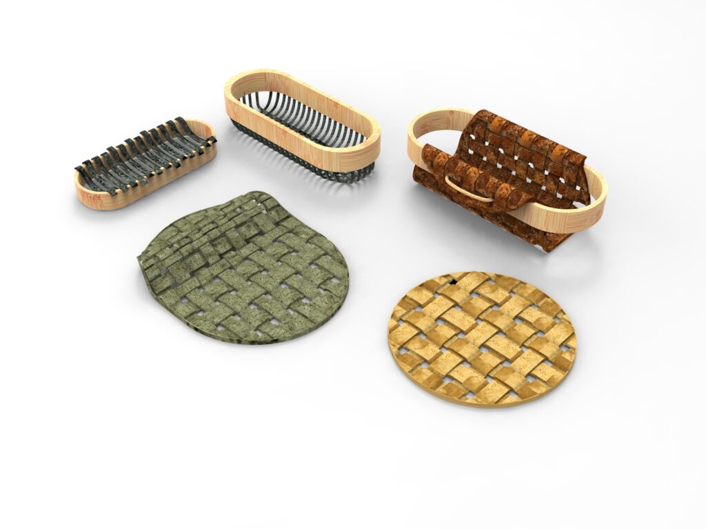 ‘Bonding Bamboo’ – converting hazardous bamboo by-products into crafted objects for interiors. Naturally dyed bamboo bio-material combined with bamboo structures. Collaboration with Mega Puspita for Altermatter, run by Applied Arts Scotland and British Council Indonesia, 2022.